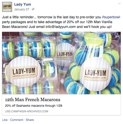 Loyalty Program: Lady Yum has chosen socialpassport.net to build and maintain their loyalty program. I also recommend that Lady Yum look into subscription-based models to create reoccurring revenue opportunities – an example being a “Mac of the Month Club” – a monthly subscription program.